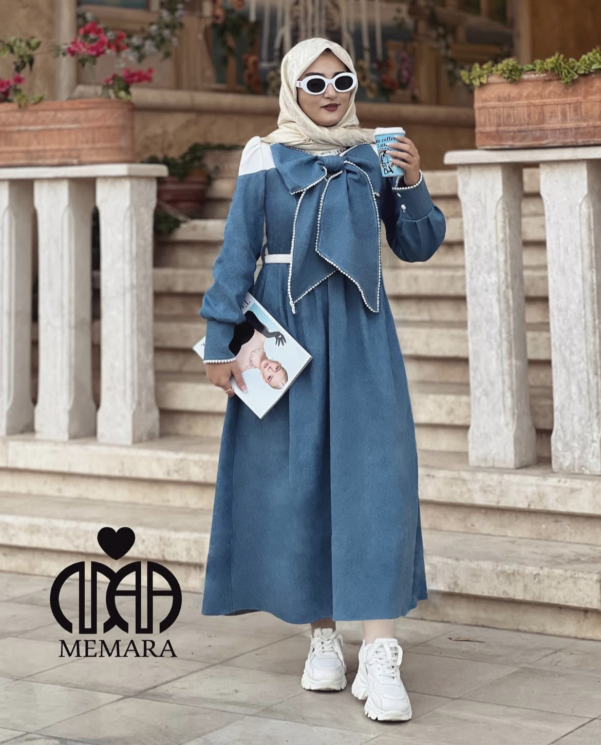 پیراهن جین پاپیونی مناسب فصول بهار پاییز و زمستان
