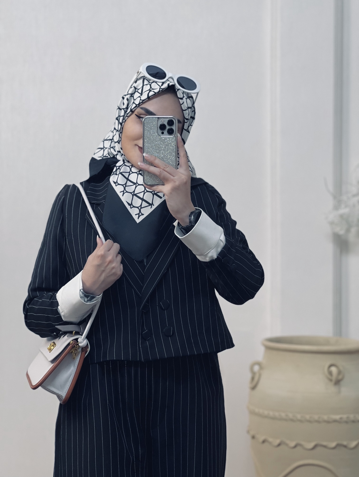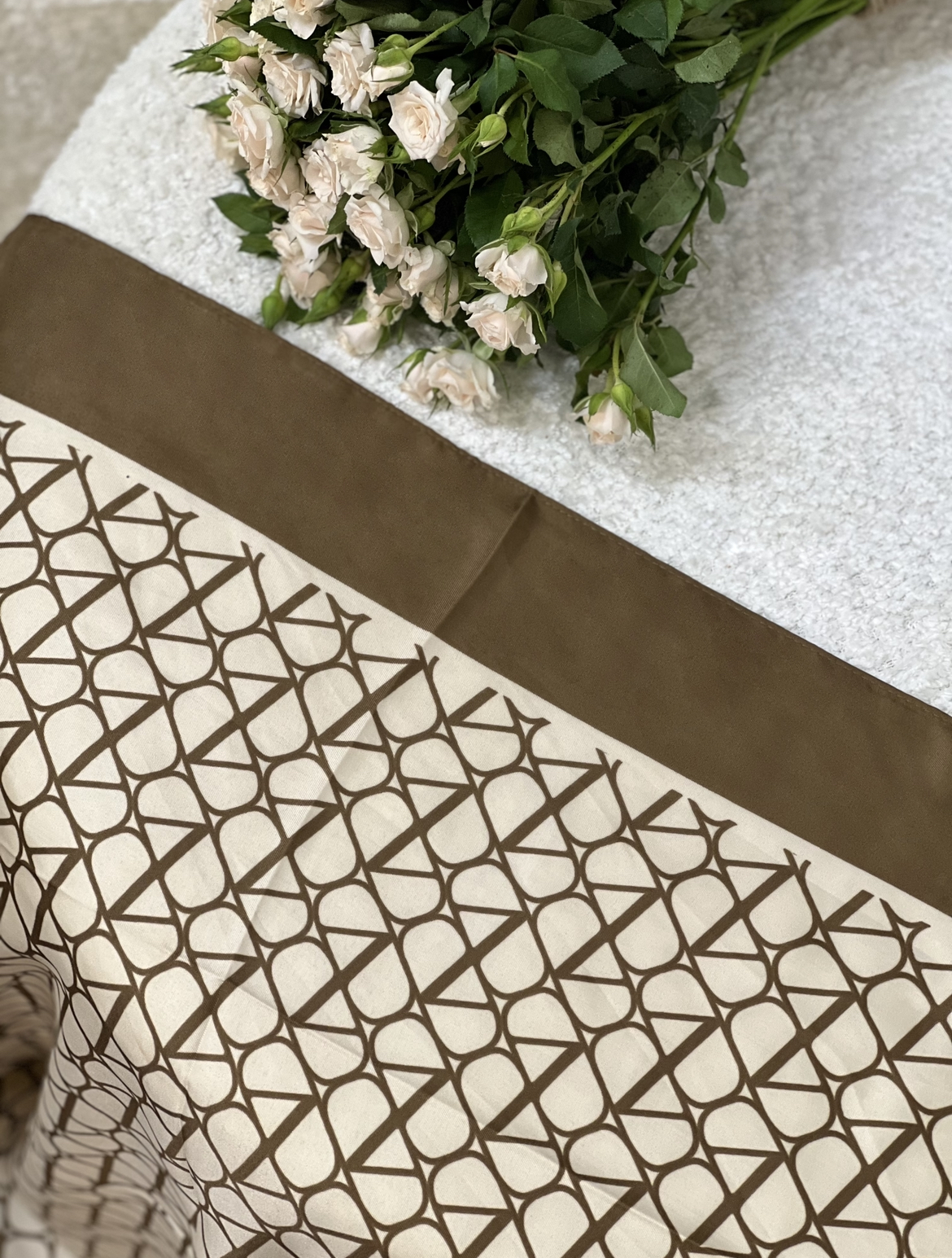 روسری ساتن تویل قواره ۹۰ ولنتیو مناسب استایل های رسمی اسپرت و کلاسیک در دو رنگ پر طرفدار سفیدمشکی و کرم نسکافه ای