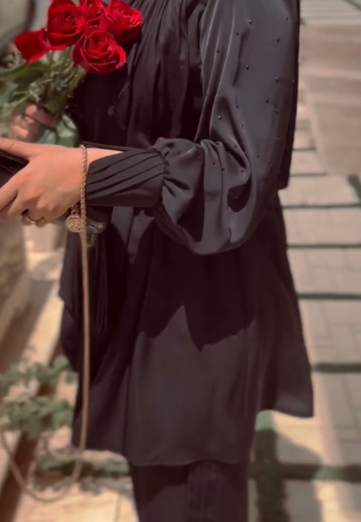 شومیز مشکی نگیندار پلیسه قد ۸۵